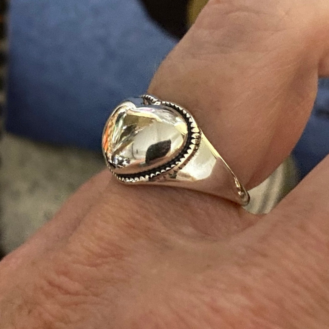 Beautiful puff heart ring crafted in solid 925 sterling silver. Features a smooth, high-polish heart with subtle vintage-inspired detailing along the band. A timeless, romantic design that’s easy to wear every day or gift to someone special.