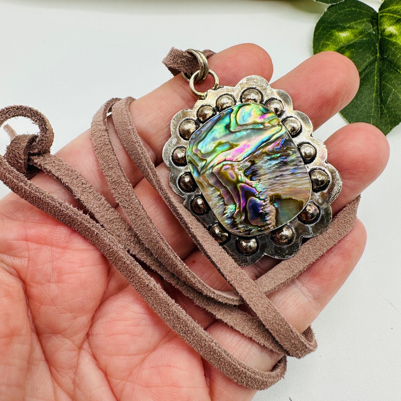 Abalone Shell Silver-Plated Boho Necklace on Suede Leather Cord