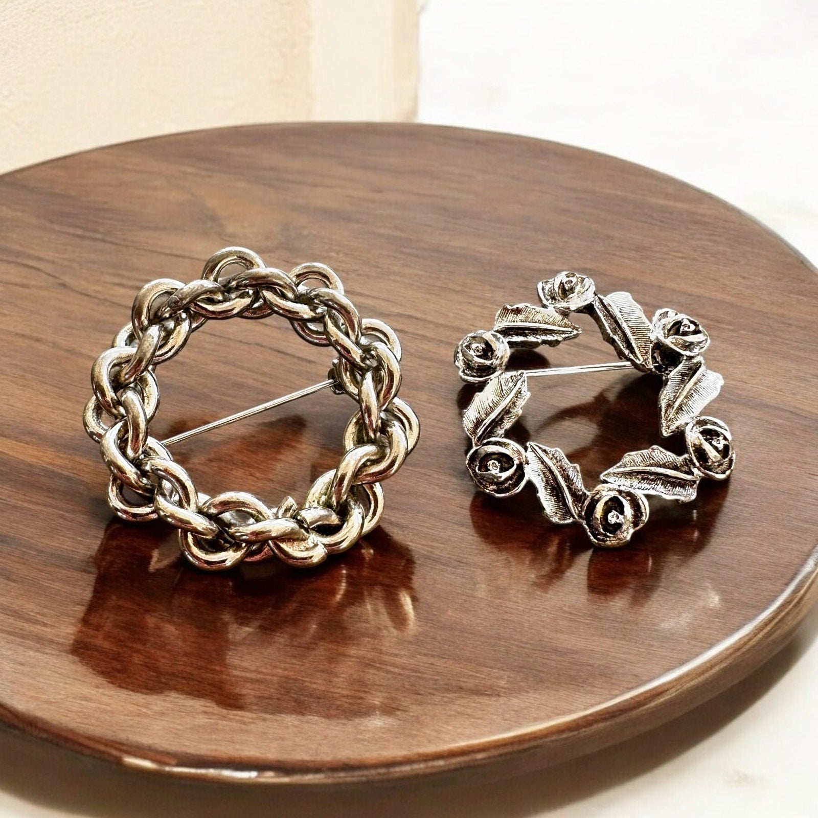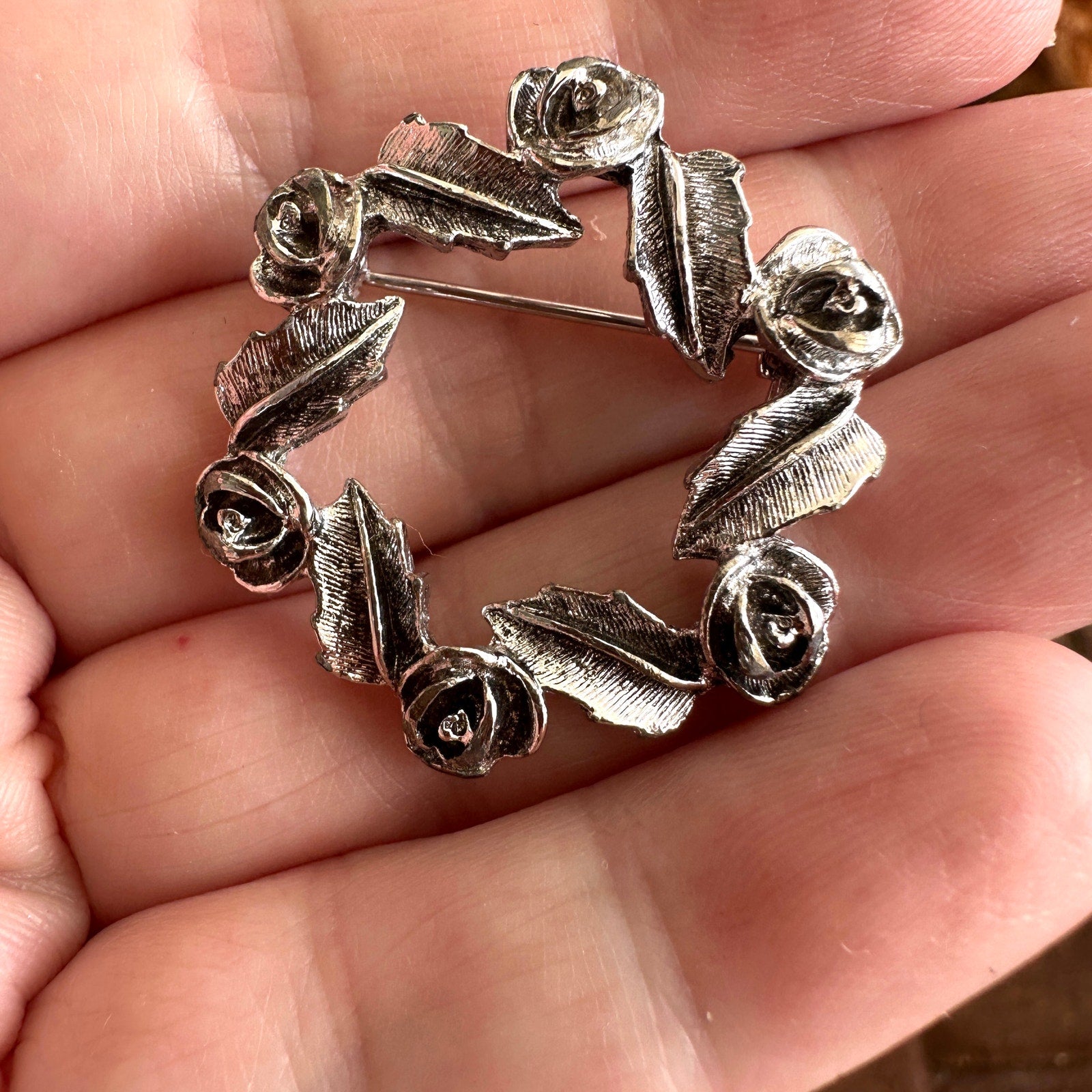 Elevate your vintage jewelry collection with this exquisite Sarah Coventry Silver Tone Rose Wreath Brooch Pin. Featuring detailed floral and leaf textures, this elegant brooch adds a timeless charm to any ensemble. Its silver tone offers versatile styling, while the sturdy metal construction ensures lasting durability. With no stones, it’s an excellent option for those with sensitive skin. Ideal for any occasion, this beautifully crafted piece is sure to capture attention and admiration.