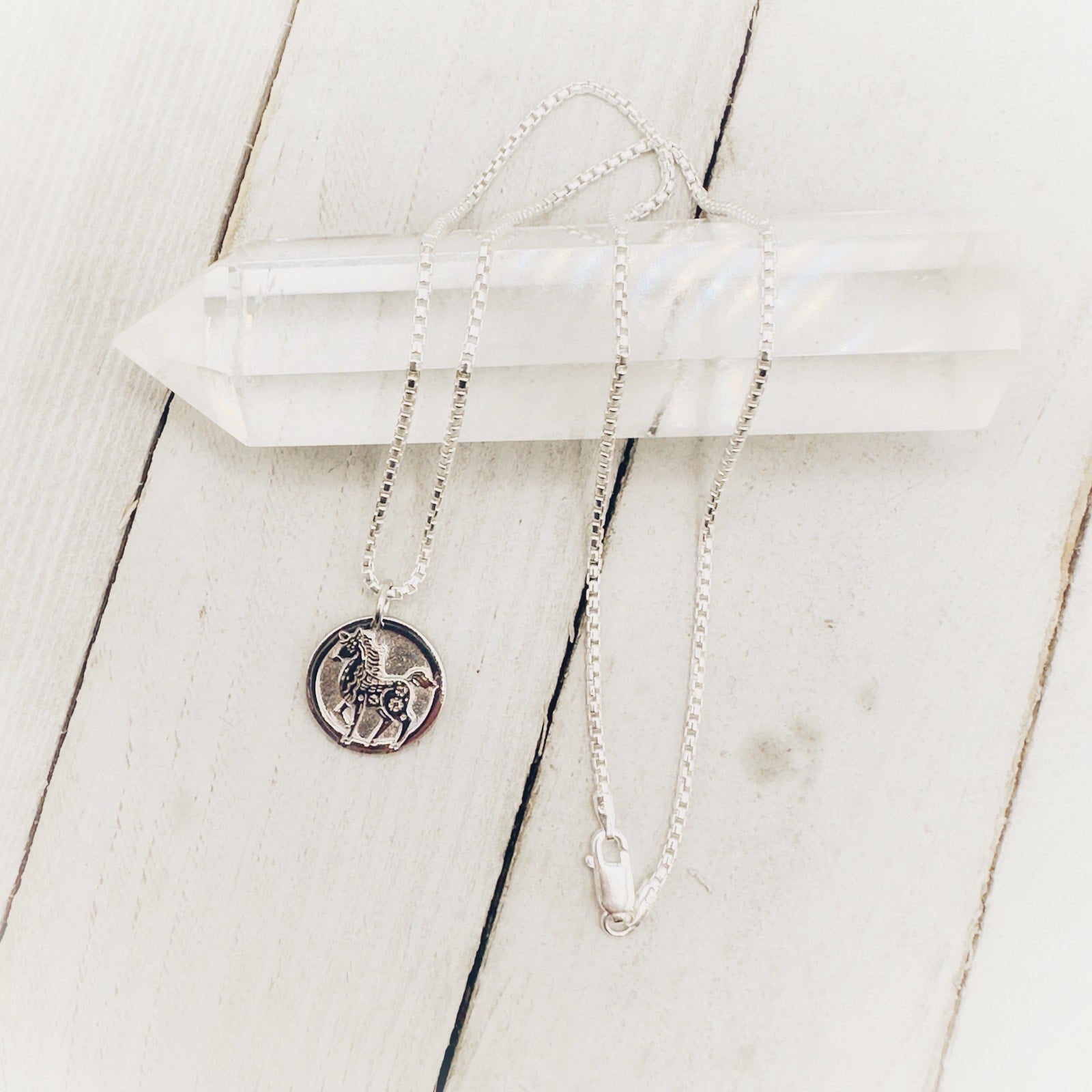 Chinese Zodiac Year of The Horse Pendant Necklace Sterling Silver
