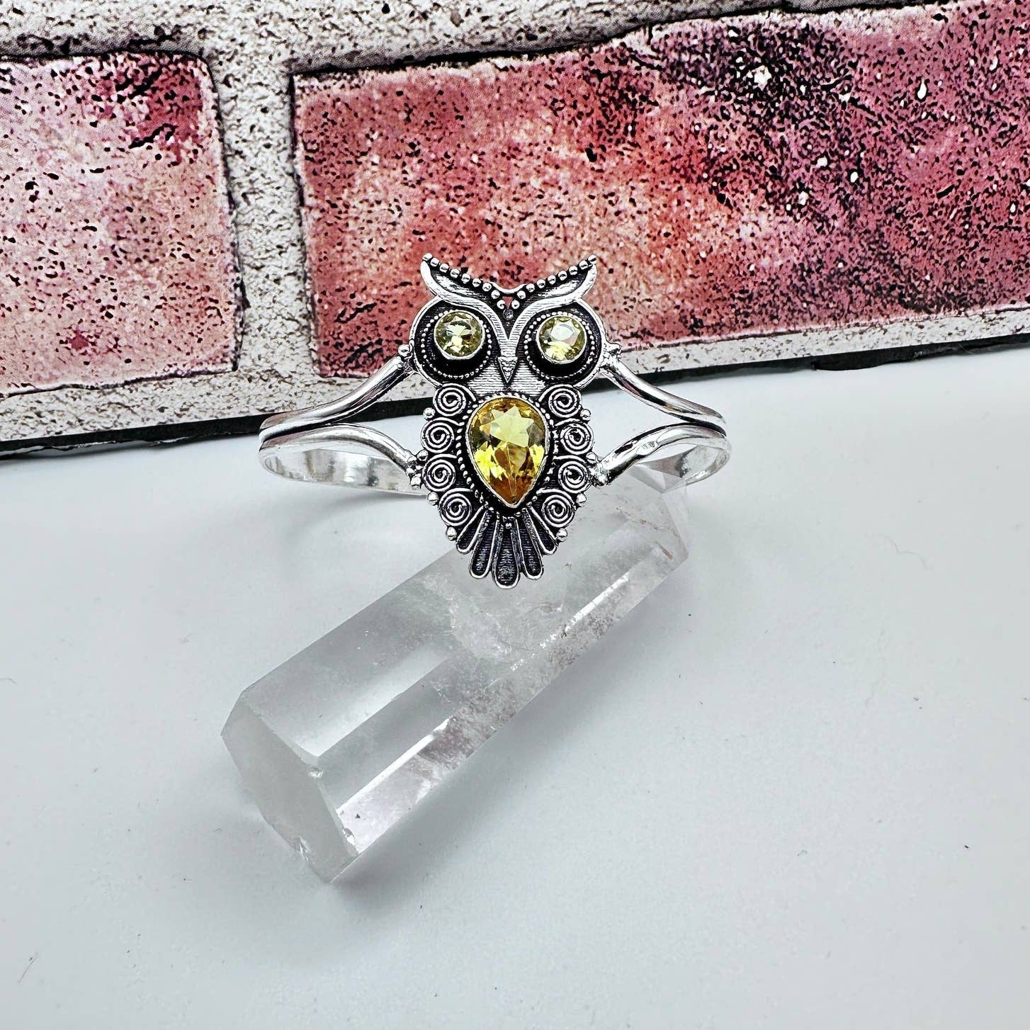 Citrine Owl Bangle Sterling Silver Plated Bracelet