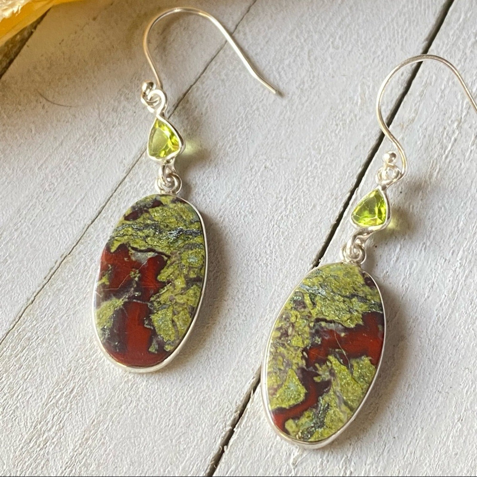Dragon Blood & Peridot Solid Sterling silver Earrings