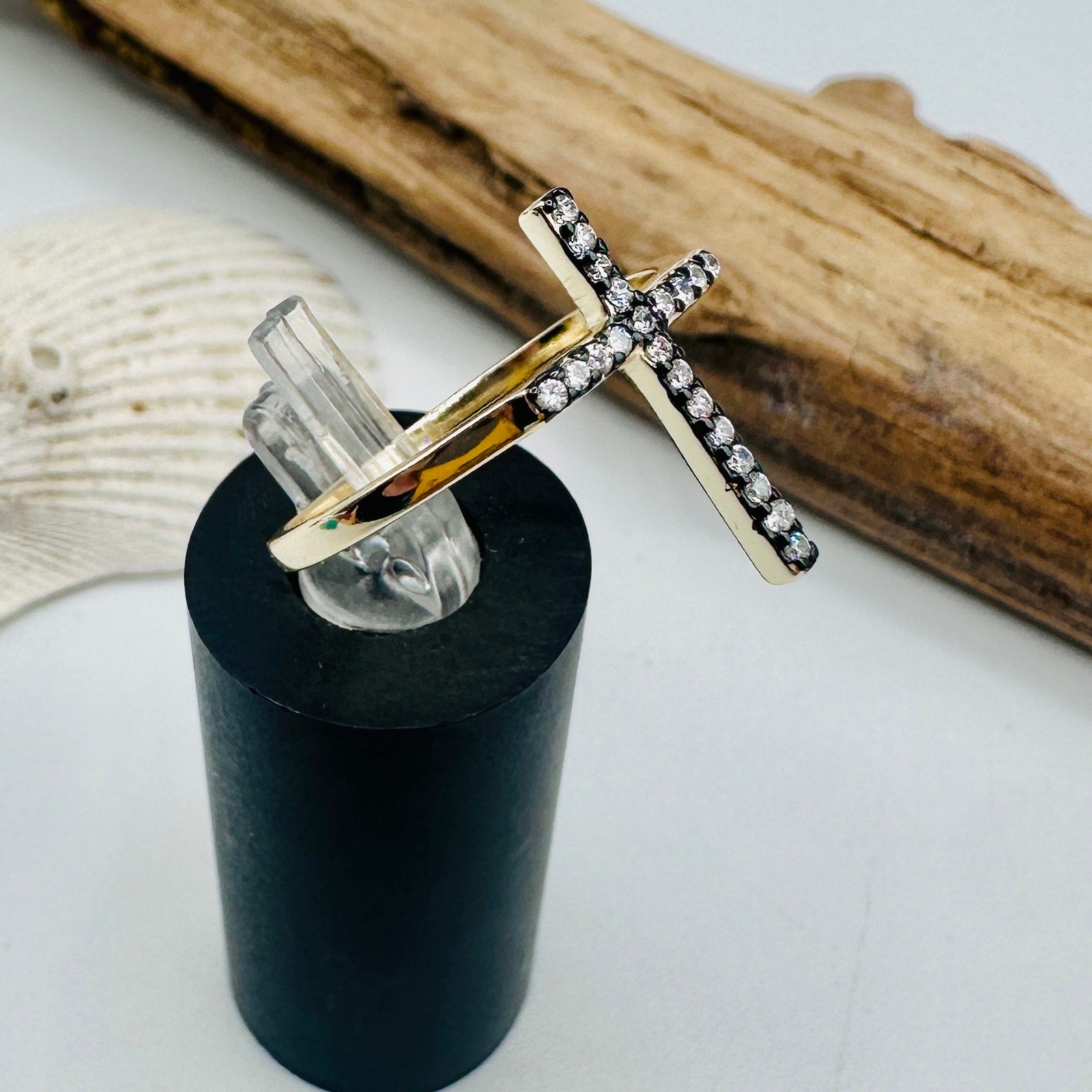 Gold Plated Sterling Silver CZ Cross Ring Size 9
