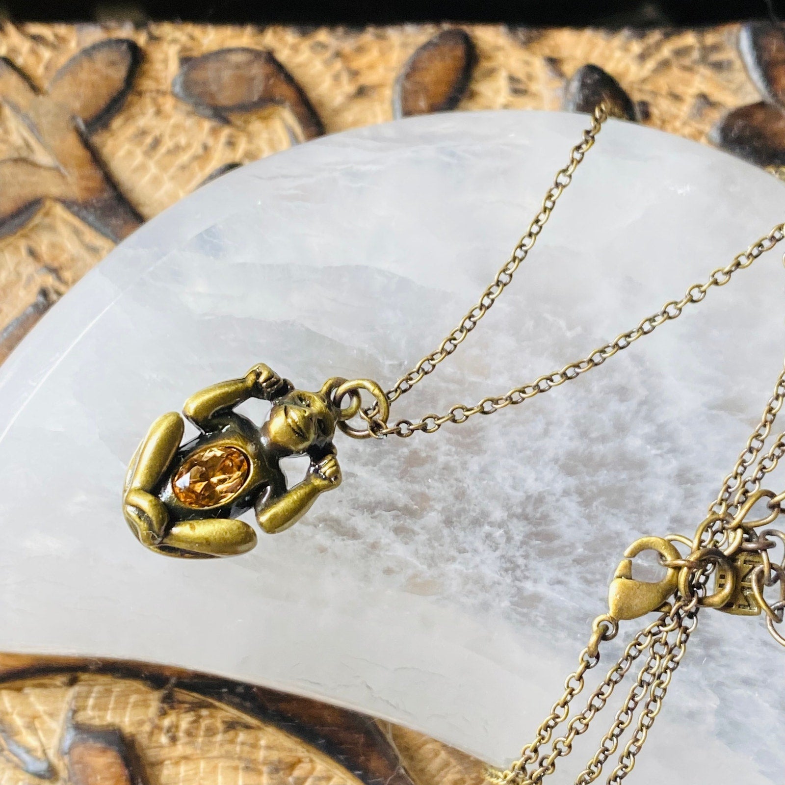 Hear No Evil Monkey Necklace Antique Copper Citrine Crystal