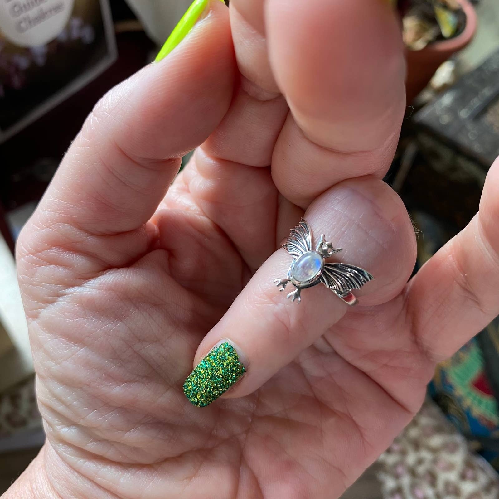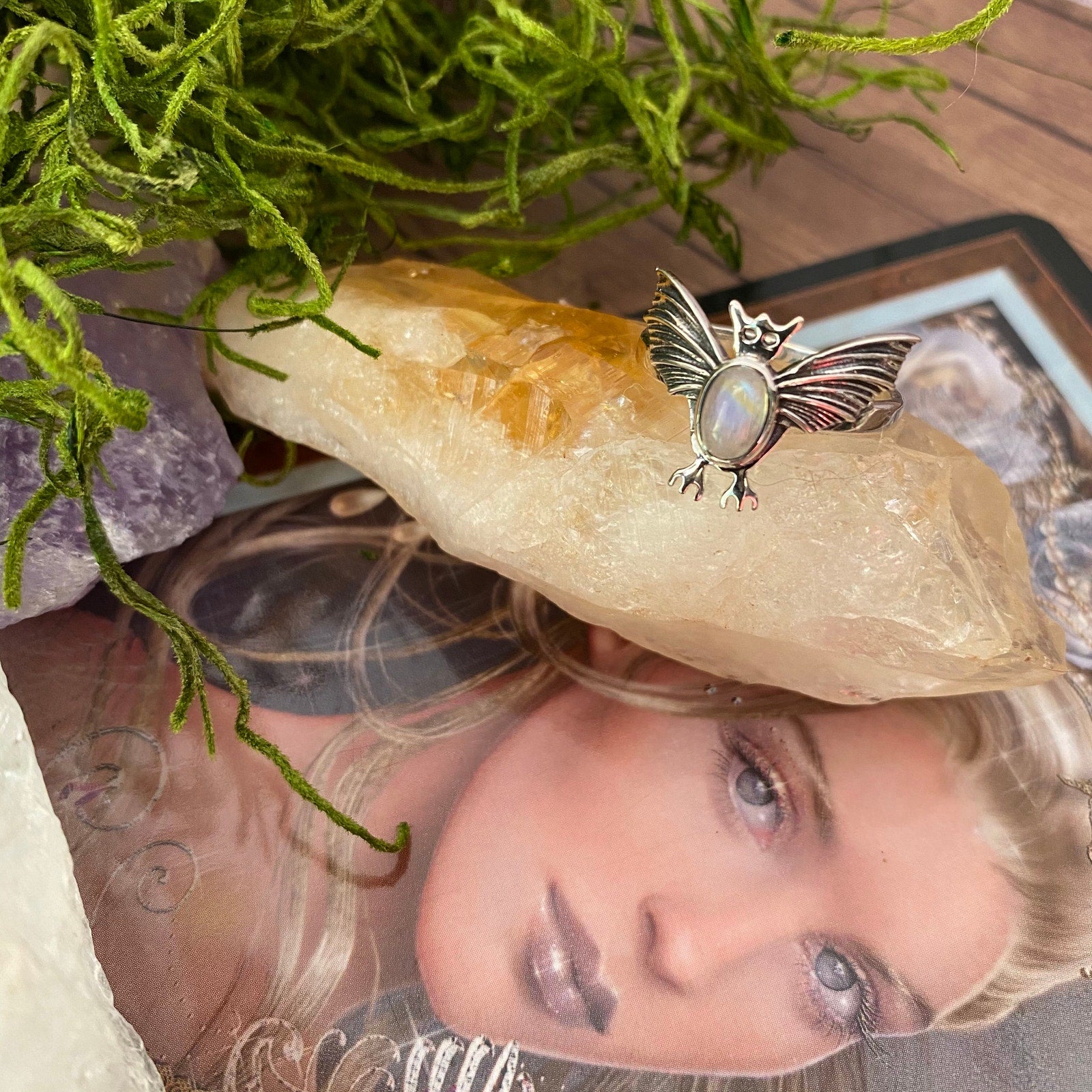 Moonstone Bat Solid Sterling Silver Gemstone Ring Size 6