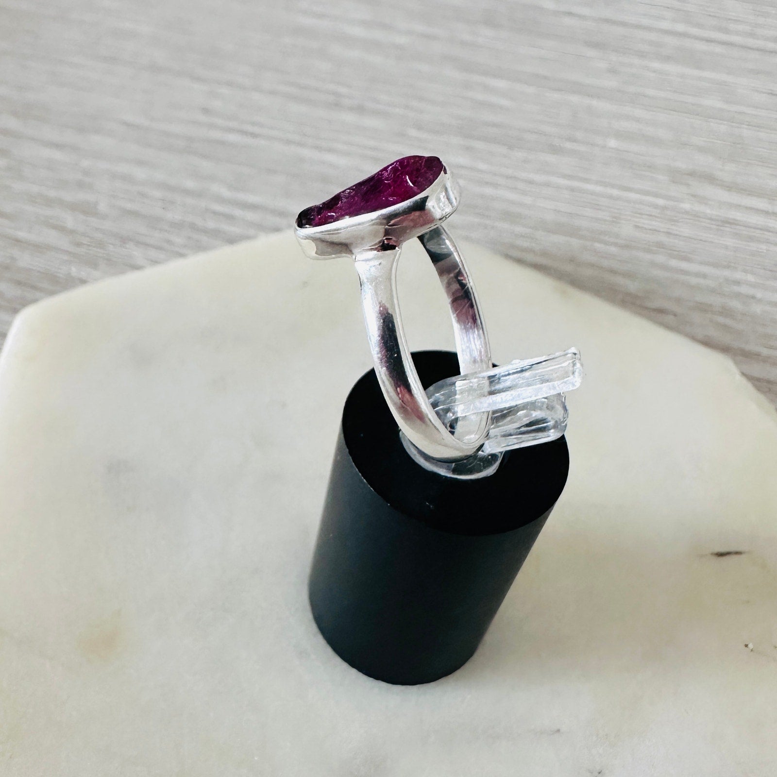 Natural Pink Tourmaline Crystal Sterling Silver Ring