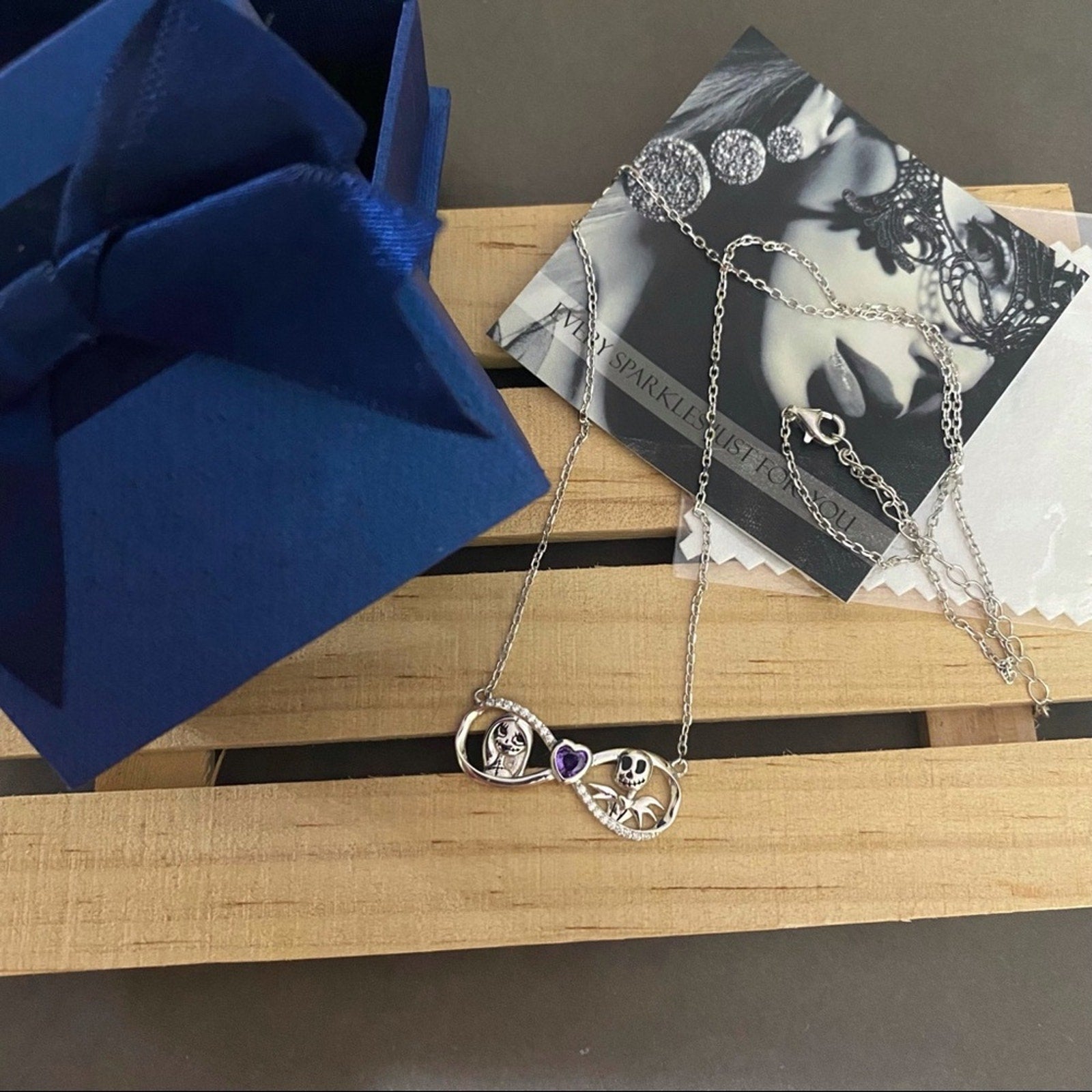 Night Before Christmas Jack And Sally Sterling Silver Infinity Heart CZ Necklace
