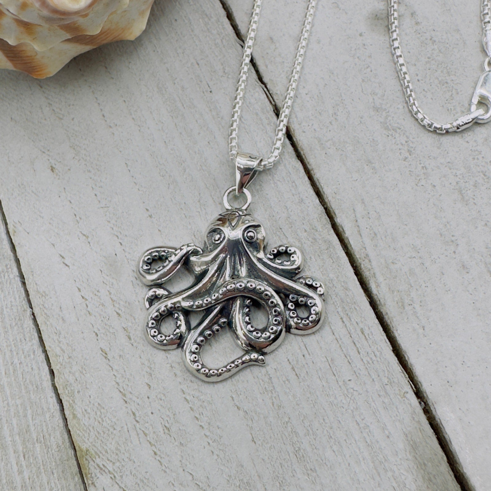 Octopus Sterling Silver Necklace Rounded Box Chain
