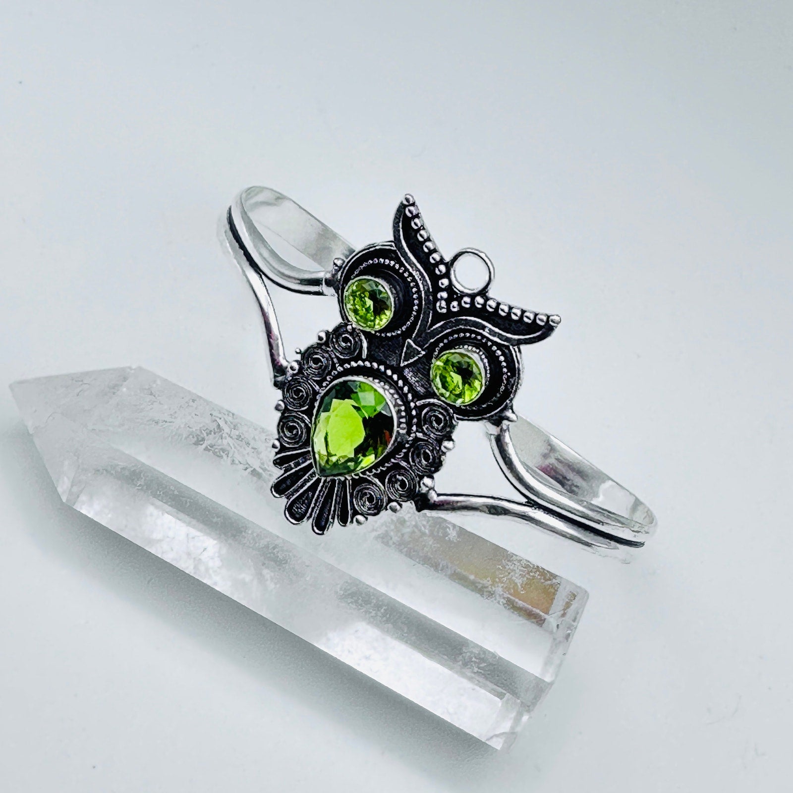 Peridot 925 Silver Plated Vintage Owl Adjustable Cuff Bangle Bracelet