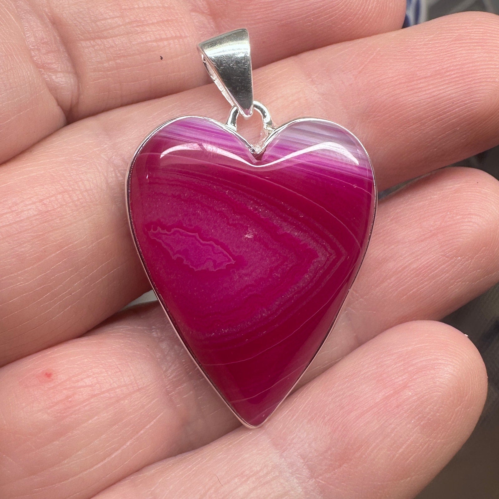 Add a touch of elegance to any outfit with this beautiful heart-shaped pendant! This pendant features a treated Pink Botswana Agate stone set in .925 sterling silver. A perfect gift for yourself or a loved one!
