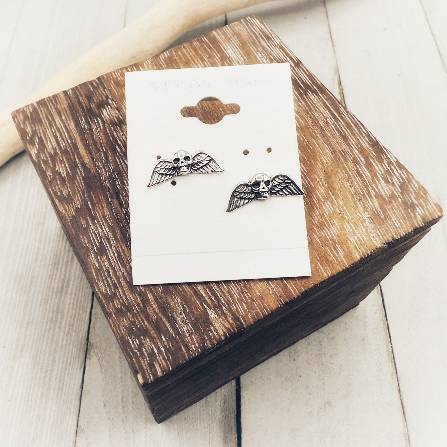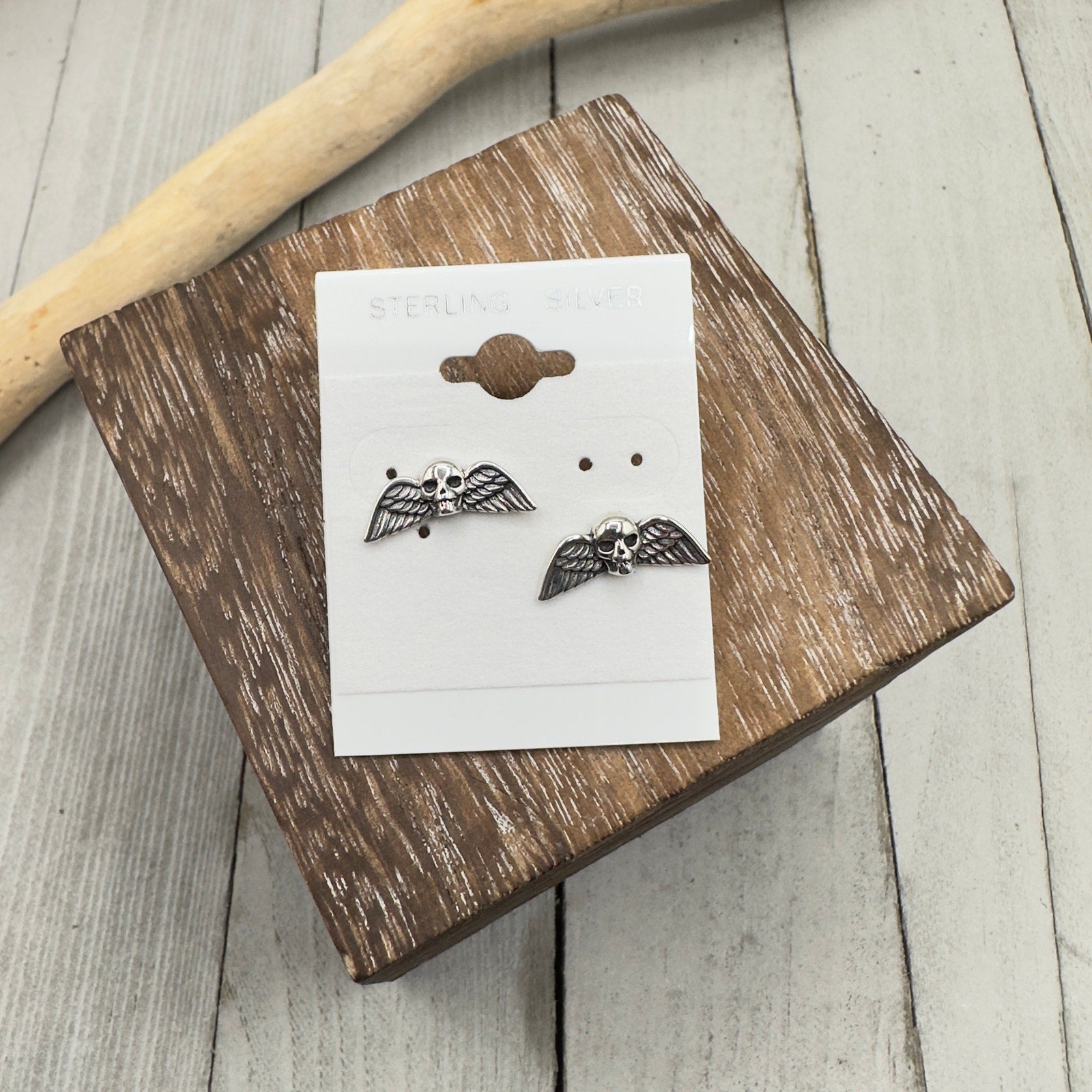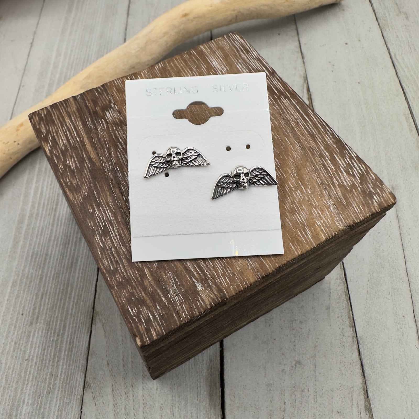 Skull With Wings Sterling Silver Earrings