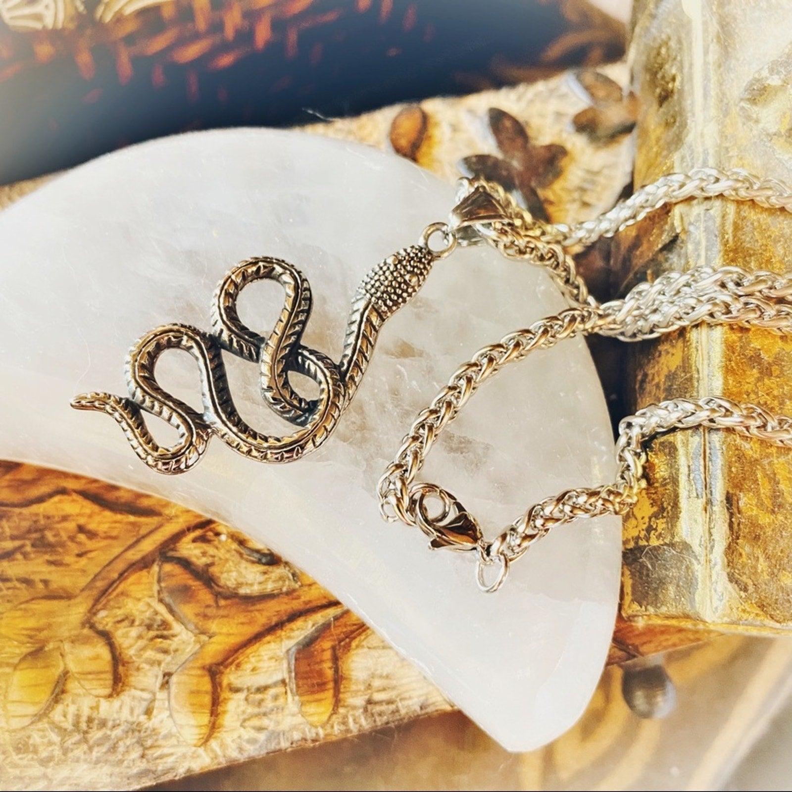 Snake Stainless Steel Wheat Chain Necklace, Unisex Snake Jewelry