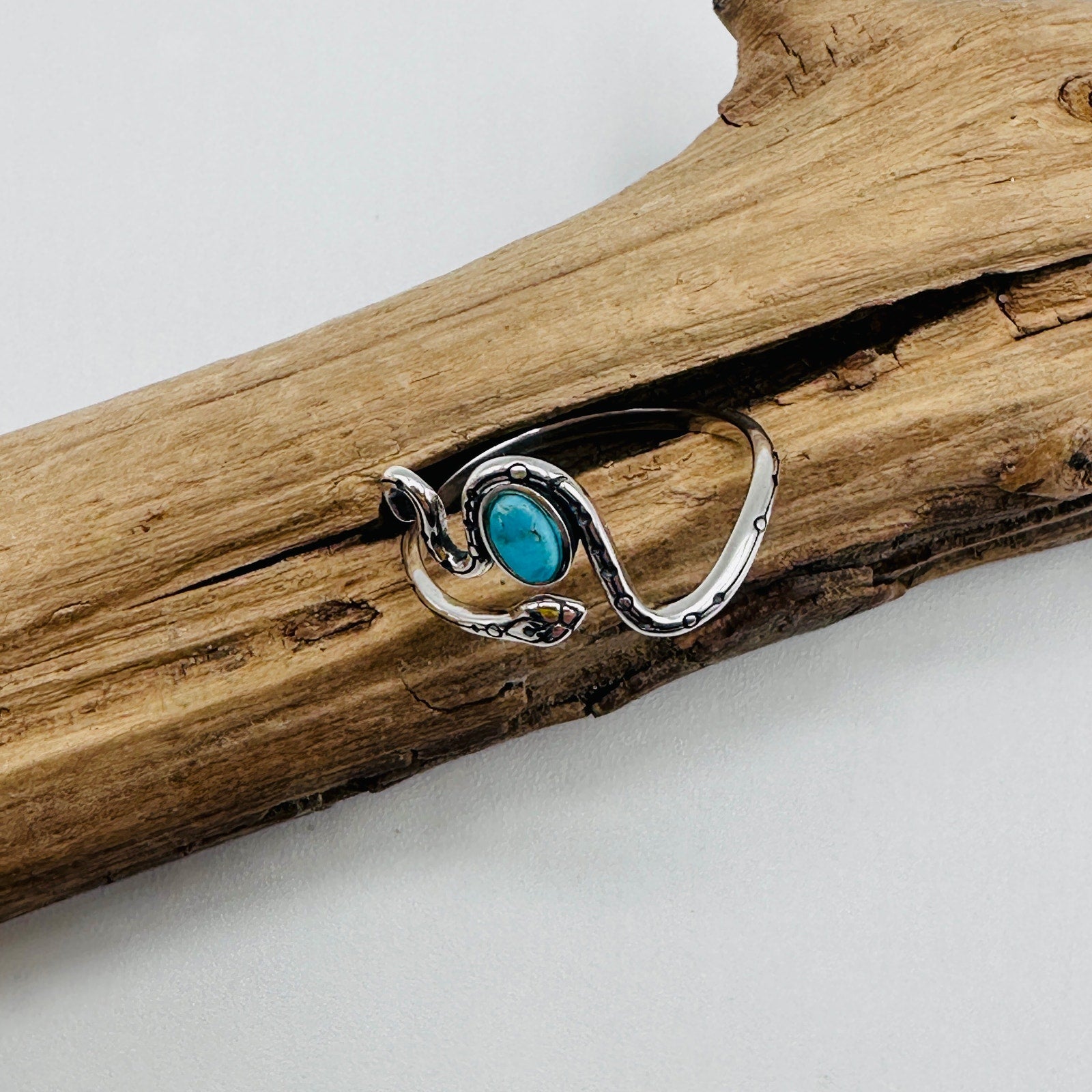 Snake Turquoise Sterling Silver Ring, Boho Ring, Gemstone Ring