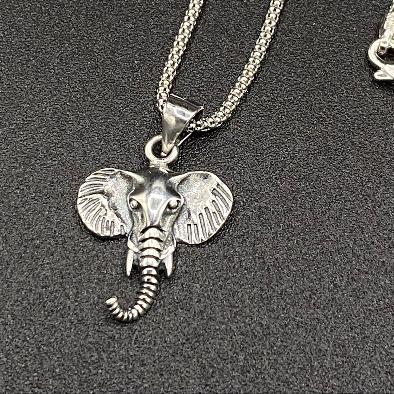 Solid Sterling Silver Elephant Head Pendant on Italian Popcorn Chain Necklace