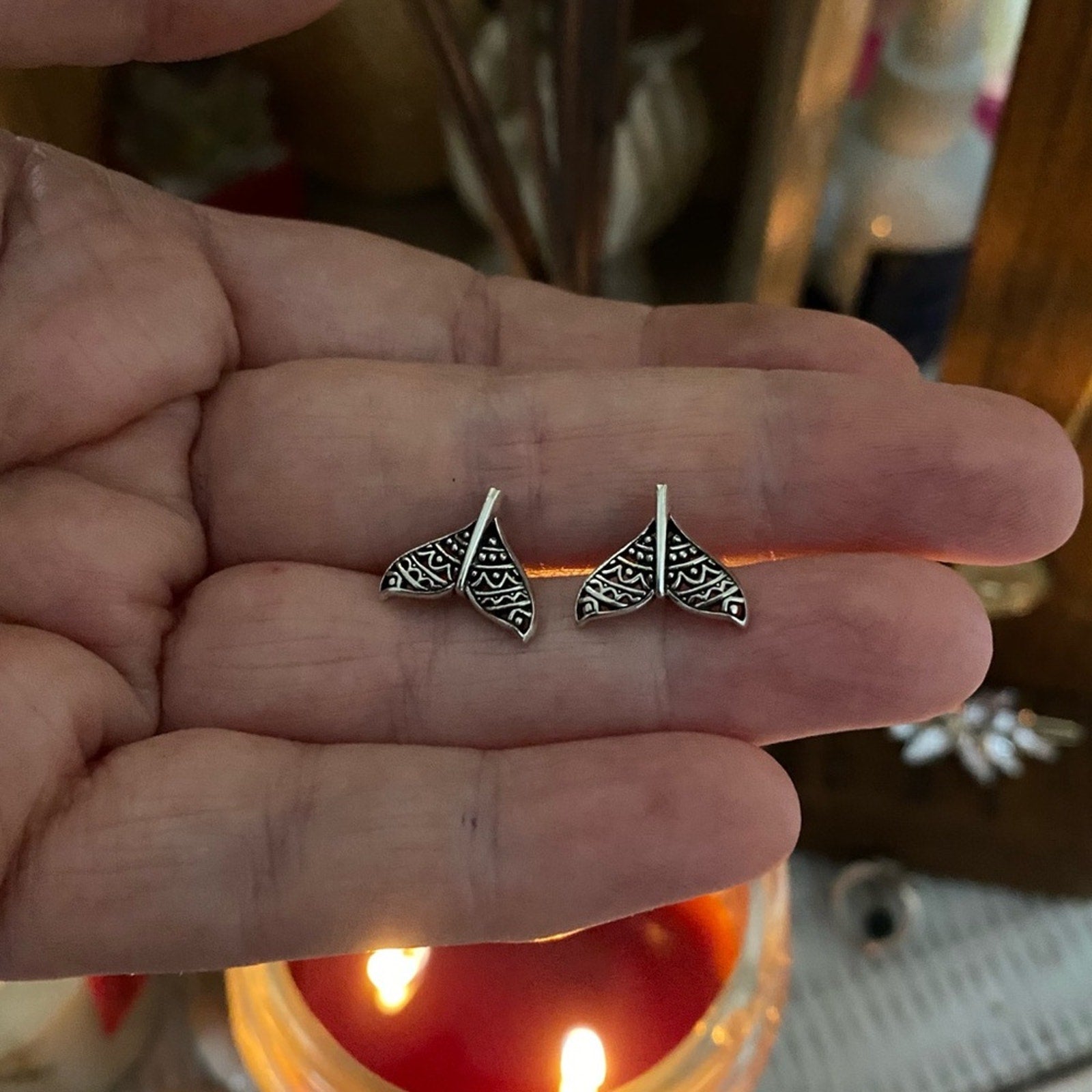 Sterling Silver Boho Whale’s Tail Stud Earrings