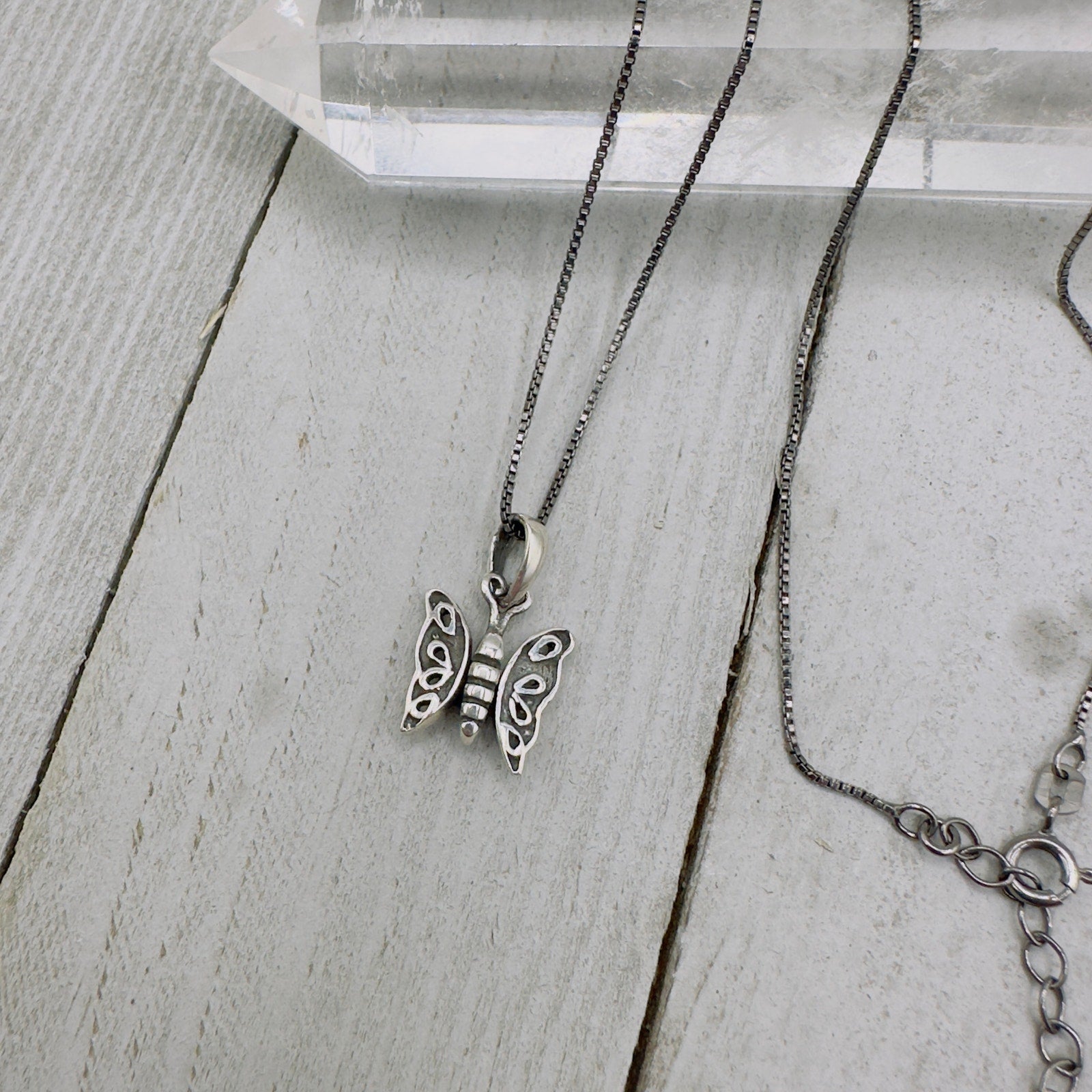 Sterling Silver Butterfly Necklace Black Rhodium Sterling Box Chain