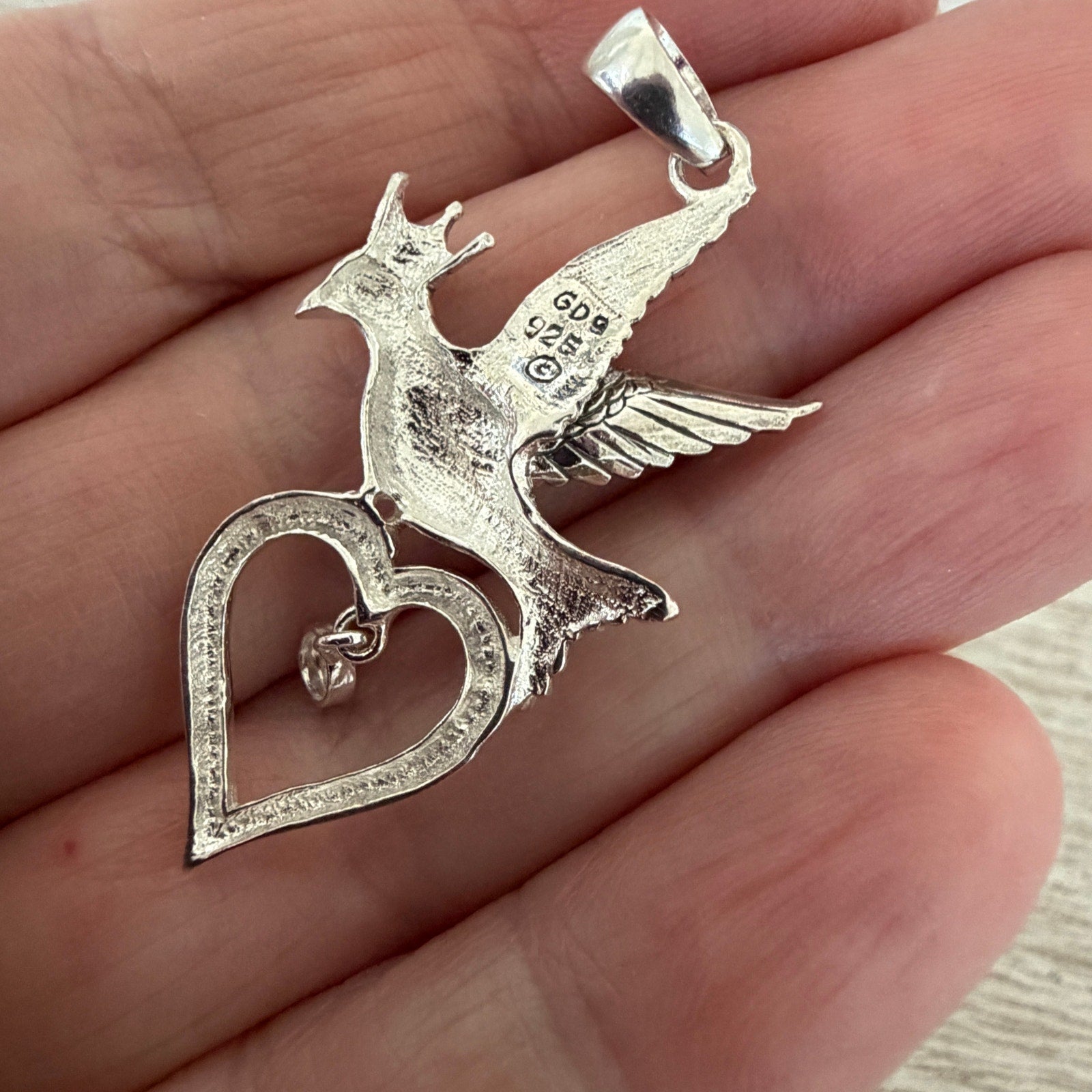 Sterling Silver Crowned Dove Peace Pendant, a symbolic design representing peace, hope, and love, crafted in solid 925 sterling silver.