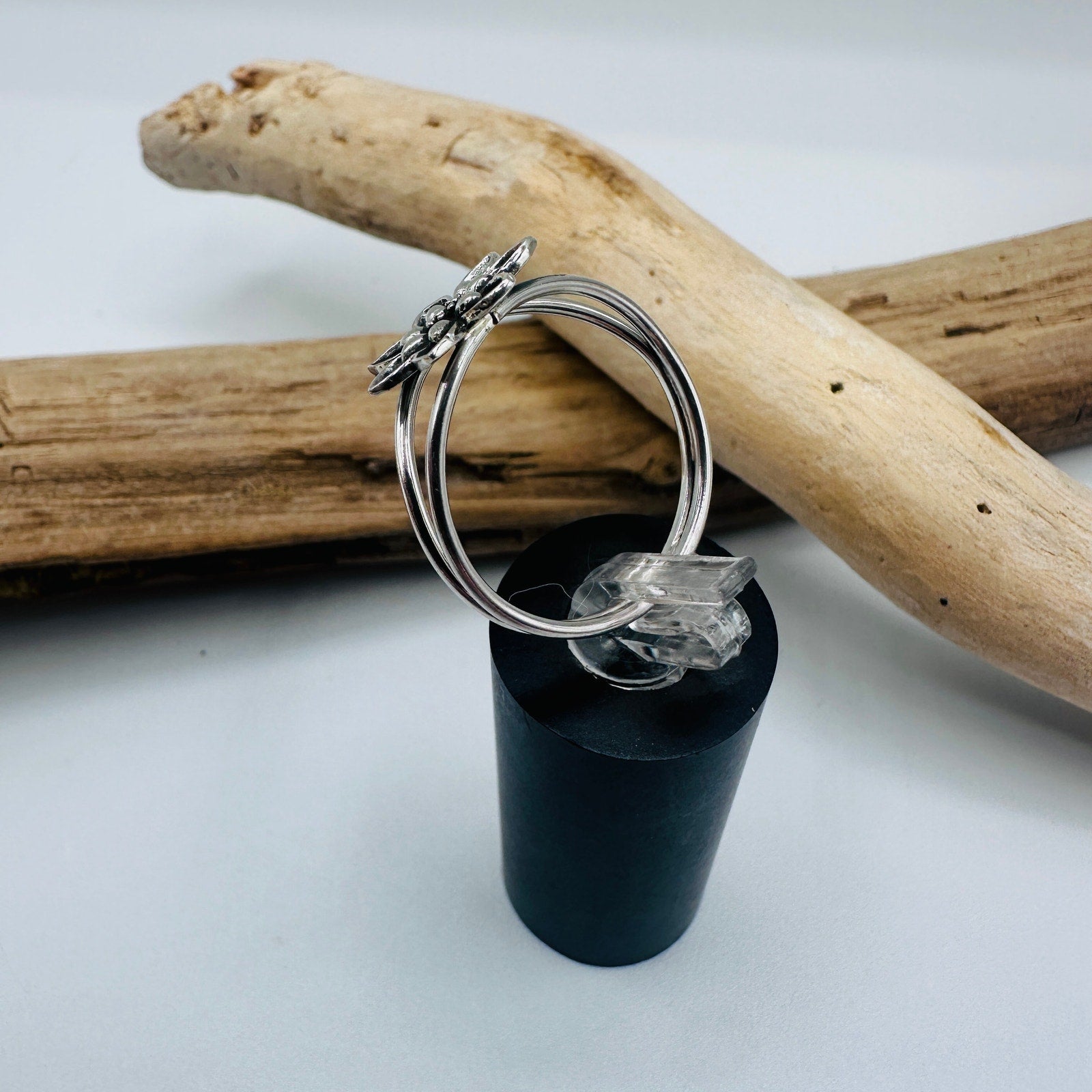 Sterling Silver Double Band Lotus Flower Ring