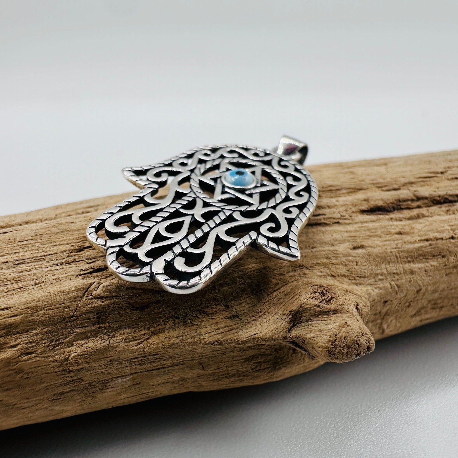 Sterling Silver Hamsa & Evil Eye Mother of Pearl Pendant