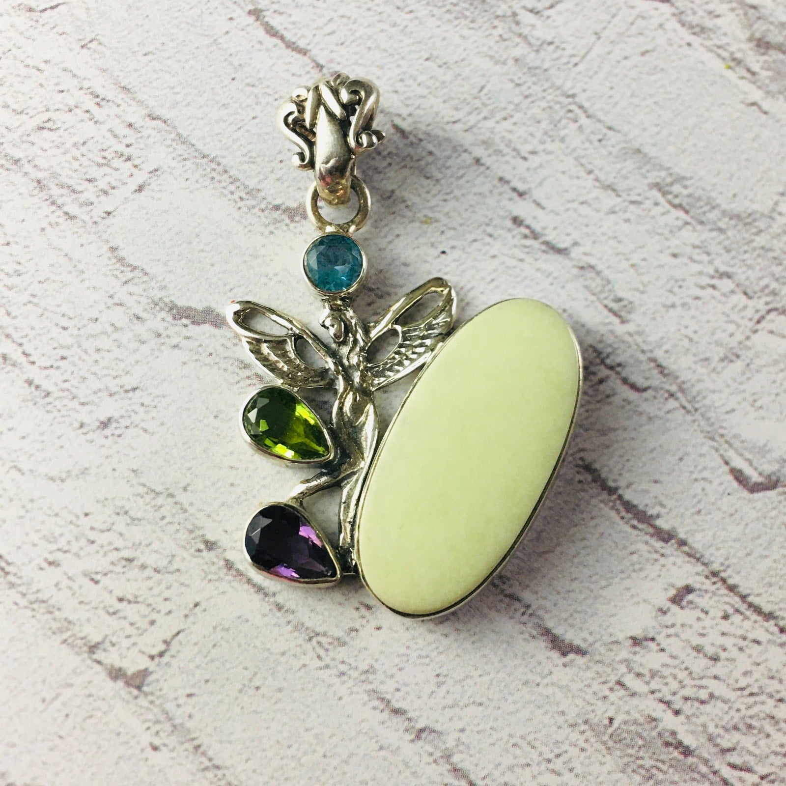 Sterling Silver Multi Gemstone Fairy Pendant