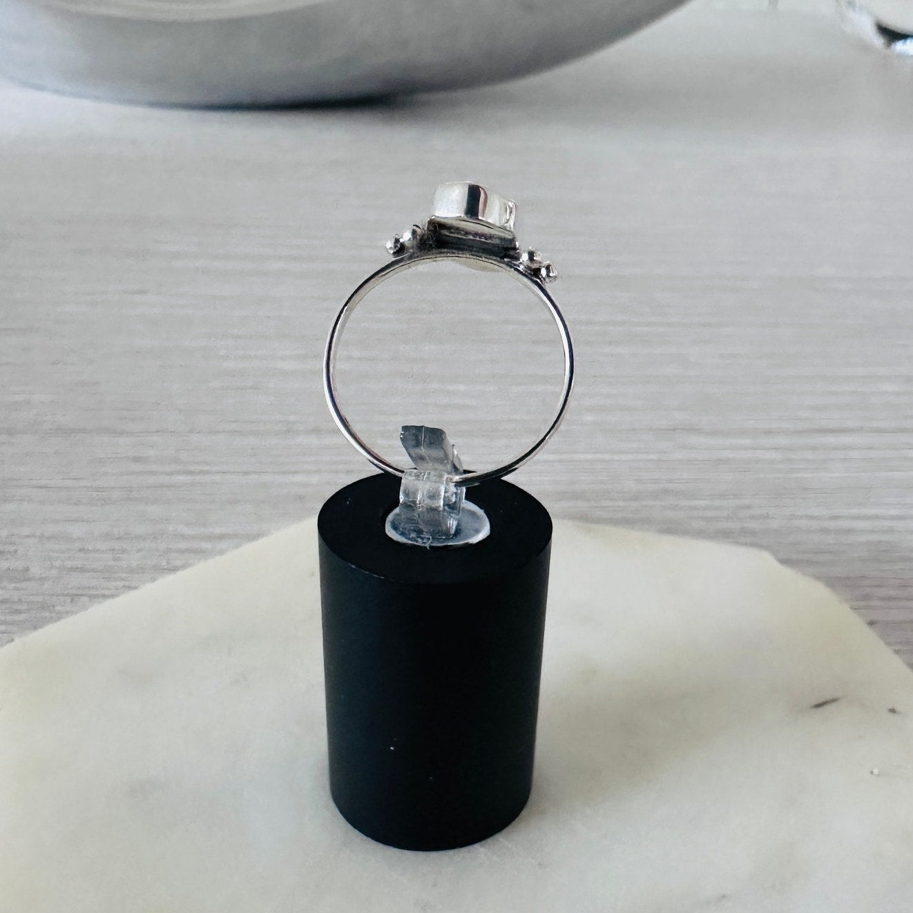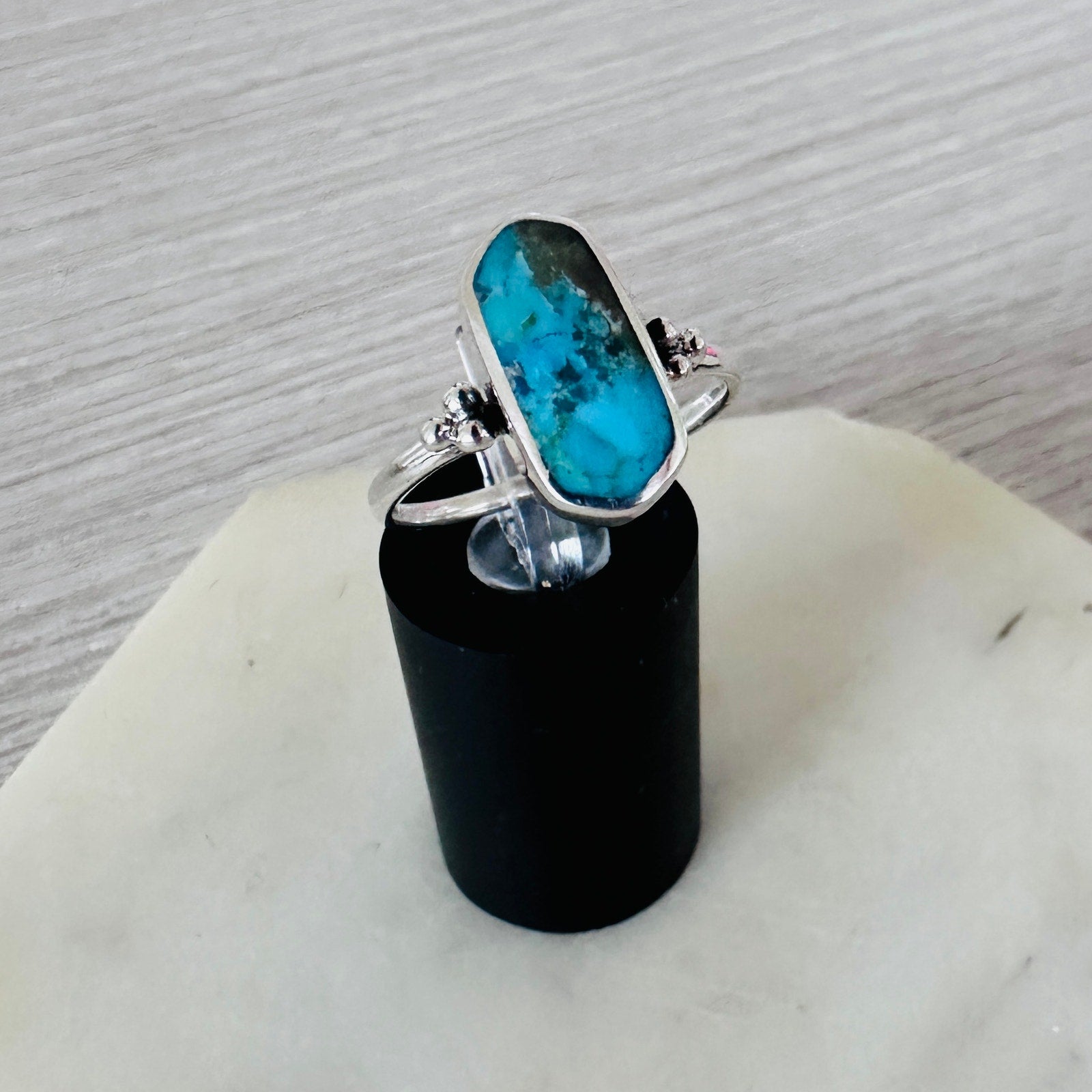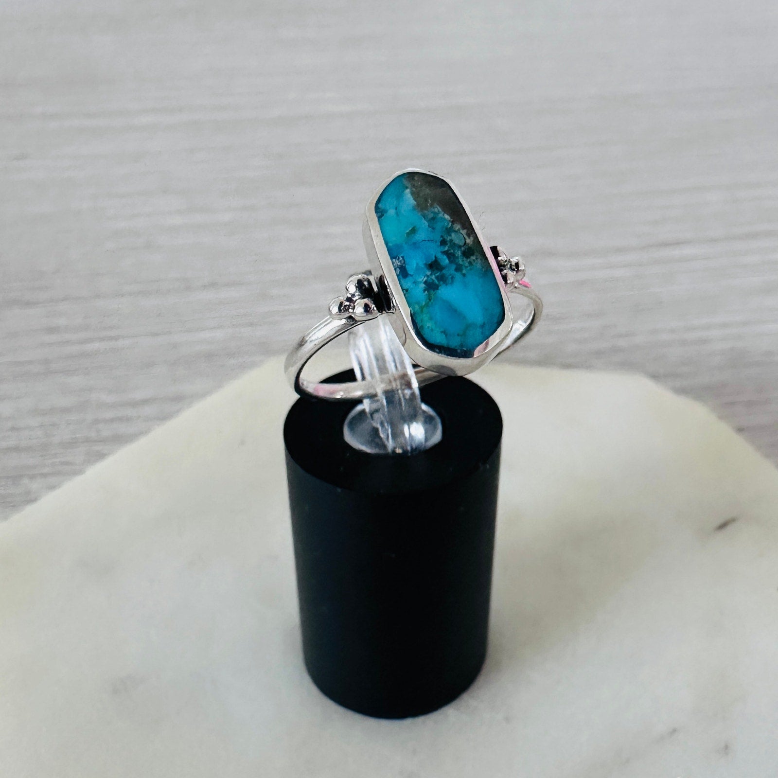 Add a touch of elegance to your jewelry collection with this stunning turquoise ring! The oxidized finish enhances the beautiful sterling silver, creating a vintage-inspired look. The genuine turquoise stone adds a pop of color and natural charm. Perfect for any occasion, this ring is sure to become a treasured piece.