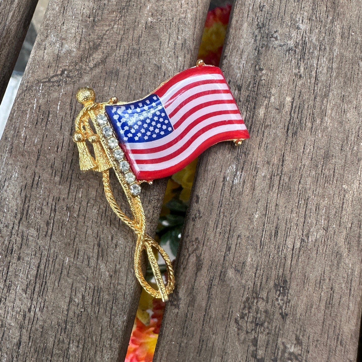 Add a touch of vintage charm to your collection with this delightful 1950's American Flag Brooch!