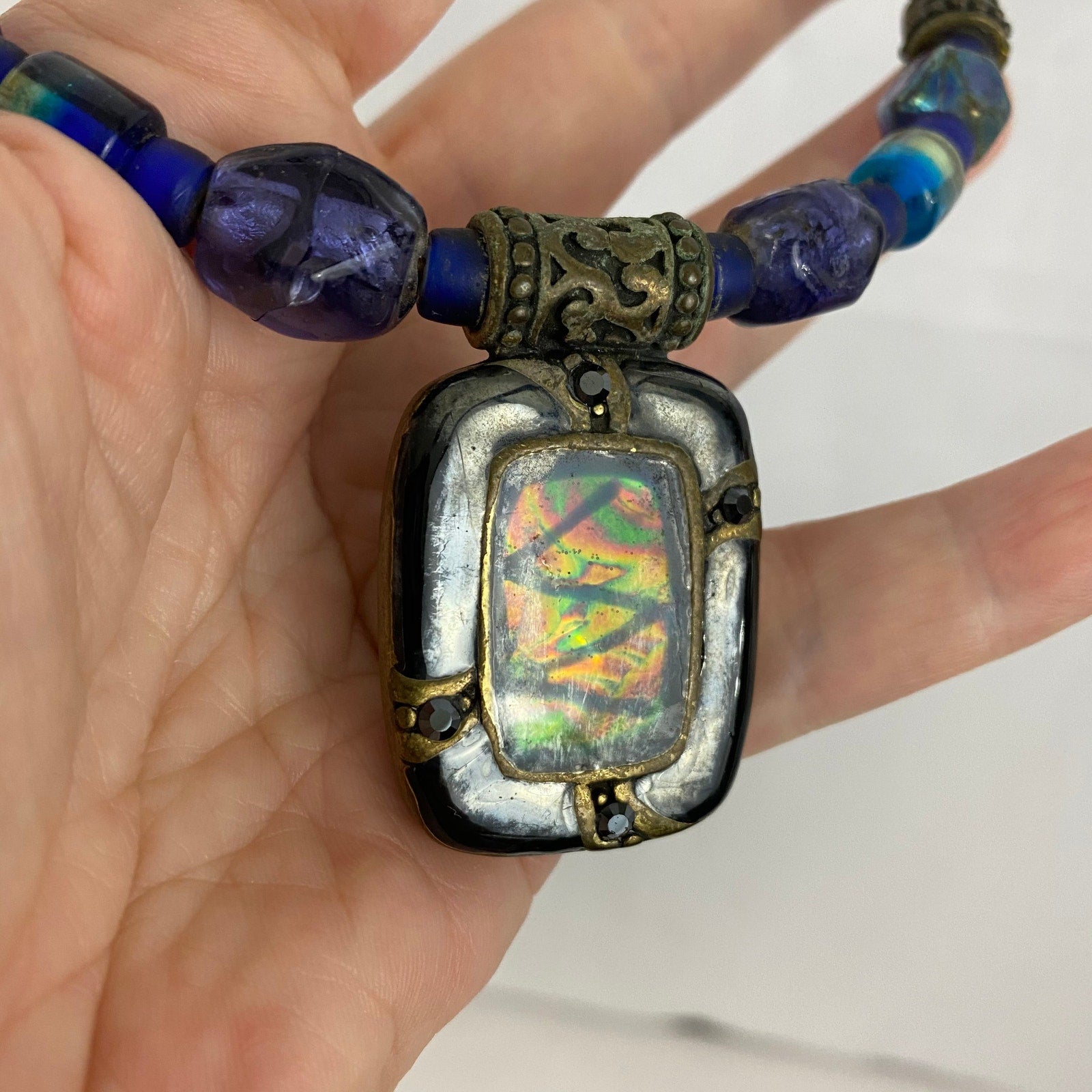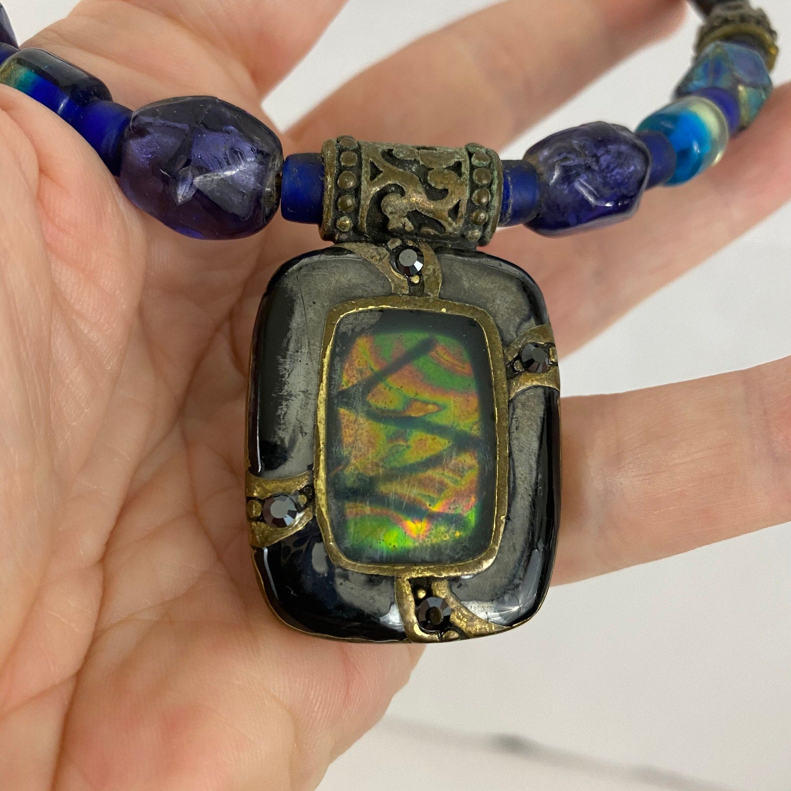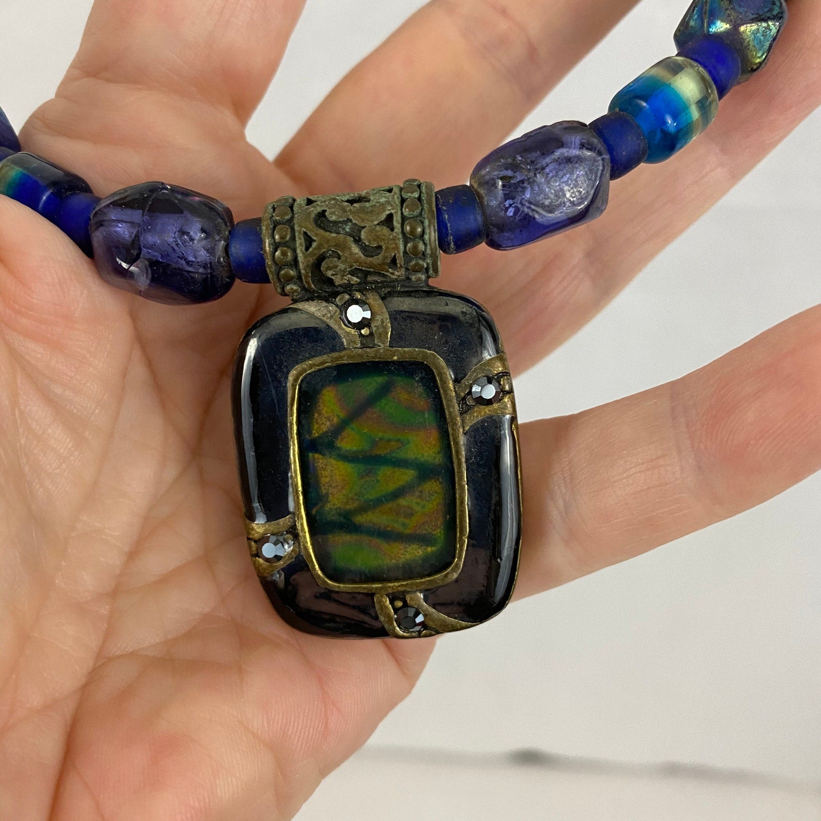 Vintage Chico’s Glass Leather Cuff Choker Necklace