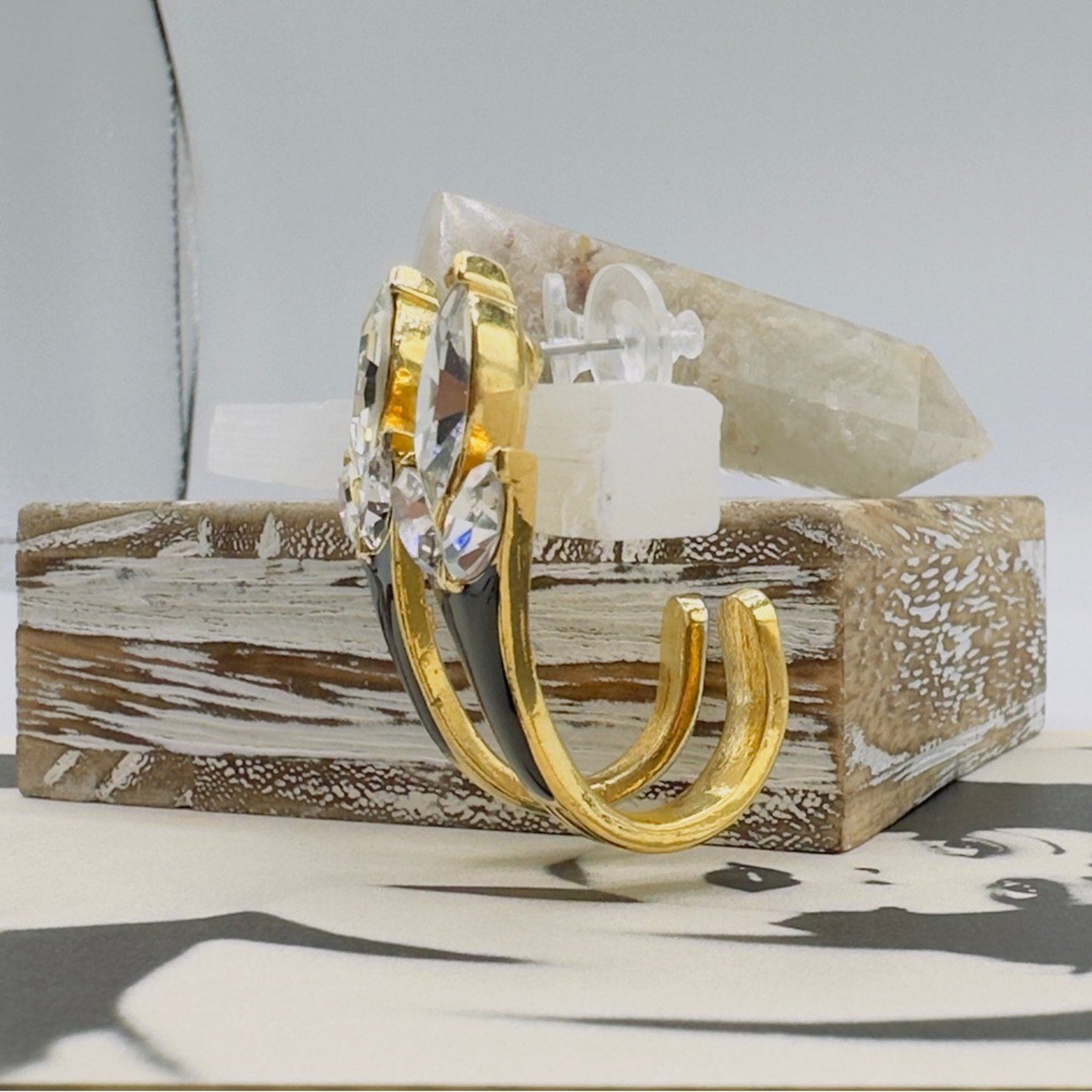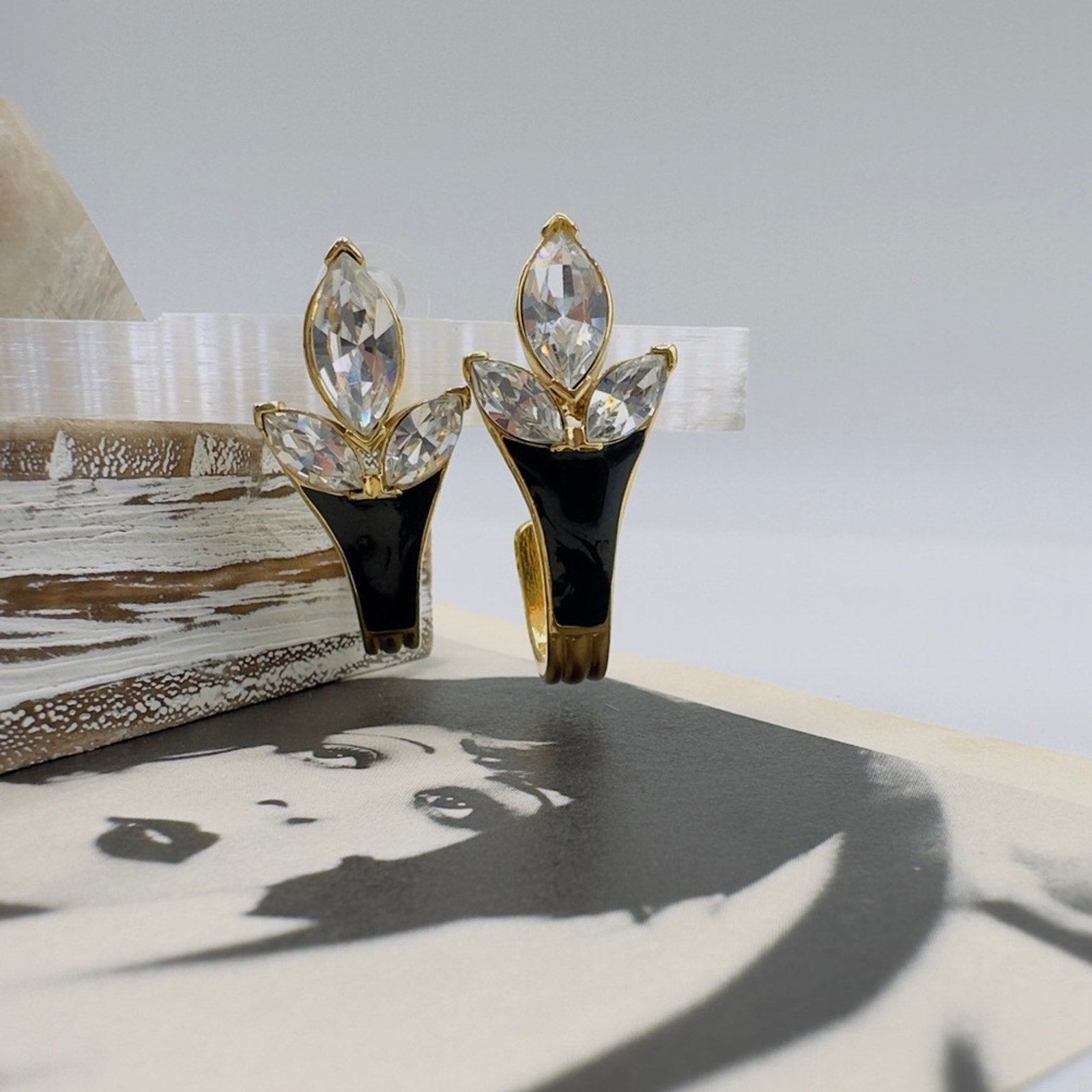 Vintage Trifari Runway Swarovski Gold Black Enamel Earrings